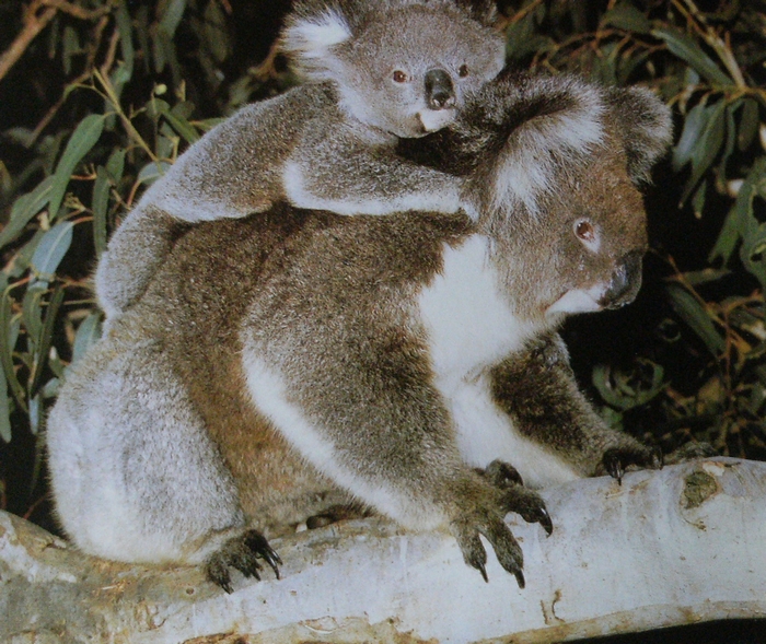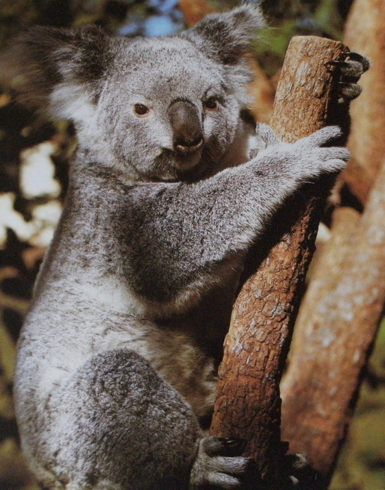 Vivant exclusivement dans certaines forêts d'Australie, le koala est une espèce menacée, victime autrefois d'épidémies, des chasseurs de fourrure et de la destruction de son habitat. Avec ses mains et ses pieds aux doigts opposables armés de fortes griffes, le koala est un bon grimpeur qui passe la plus grande partie de sa vie dans les arbres. Il est beaucoup moins à l'aise sur le sol où il s'aventure d'ailleurs rarement.